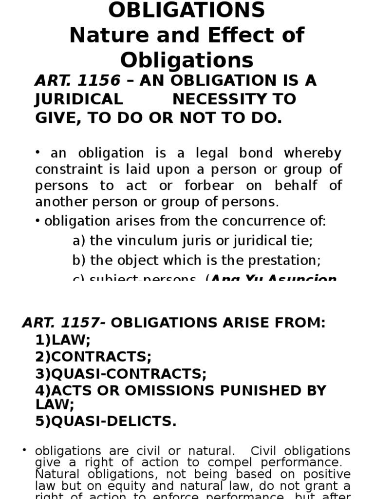 The duty to paint a house, or to refrain from committing a nuisance) 21) positive or affirmative personal obligation from the viewpoint of persons obliged 1) unilateral where only one of the parties is bound *note: example of obligation. (duty example) my father always felt it was.